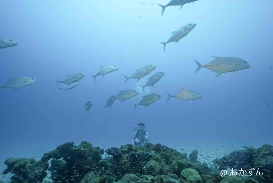 水納島ワイドでは!スカシテンジクダイの群れにカスミアジ群れが突撃〜