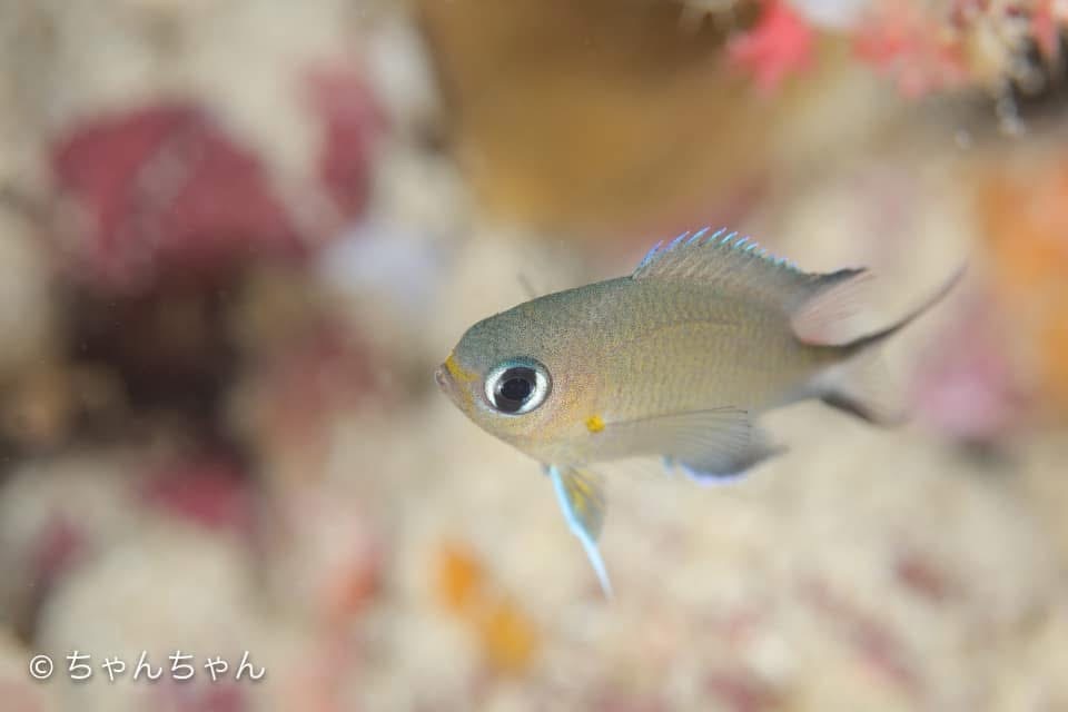 タンポポスズメダイとヤマブキスズメダイの幼魚がめちゃ良い所に一緒にいて最高でしたね!