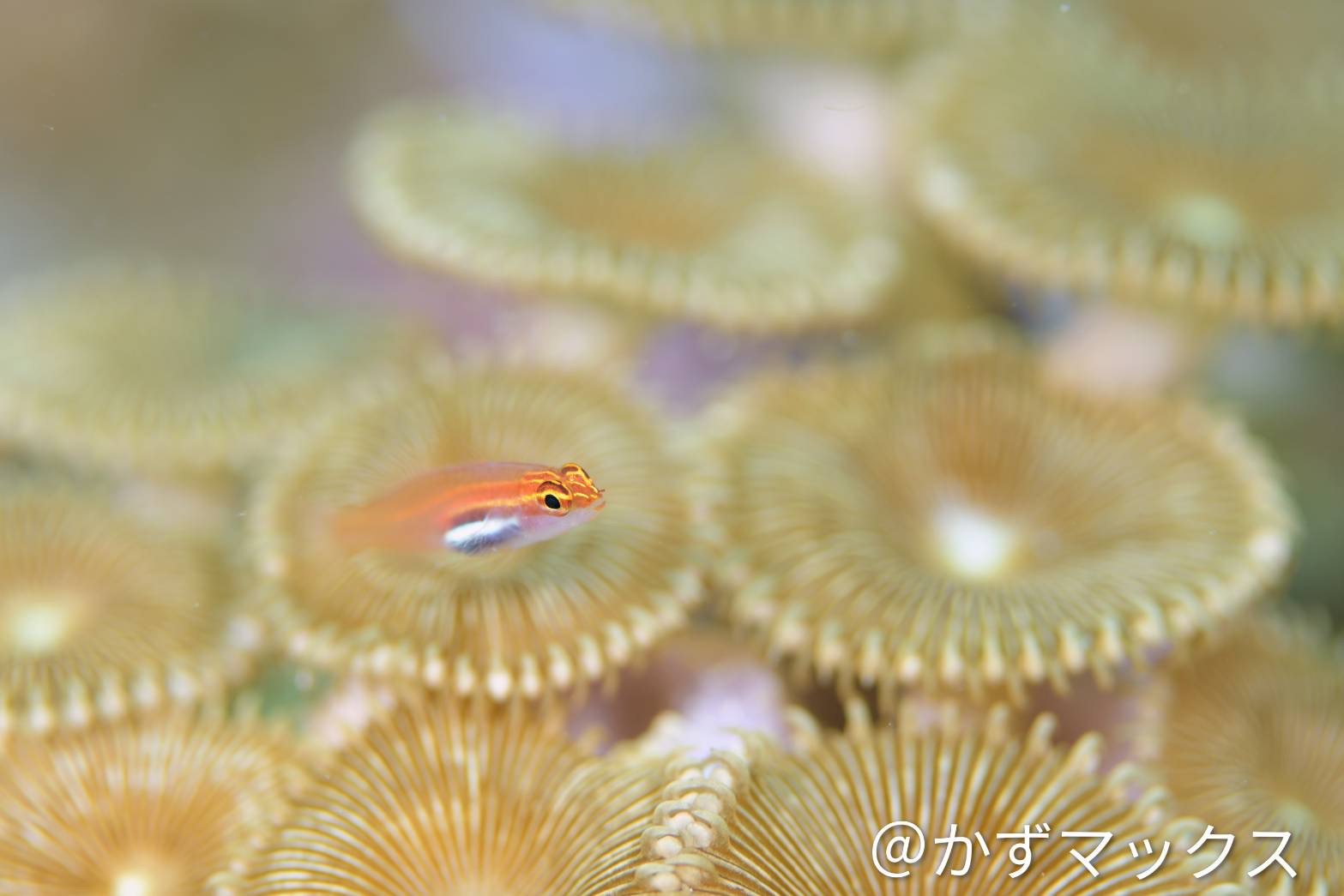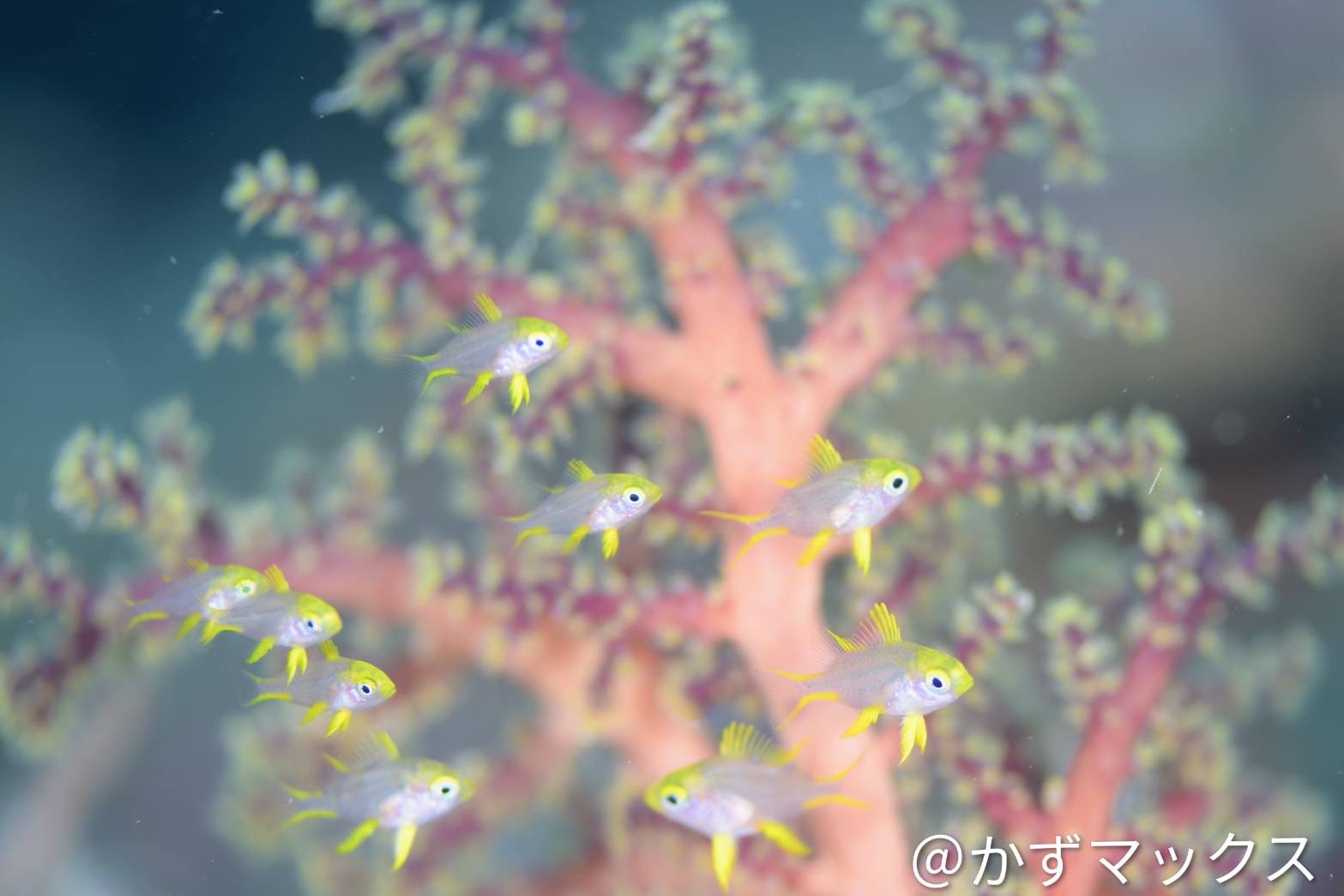 めちゃくちゃ良い所にヤマブキスズメダイ幼魚