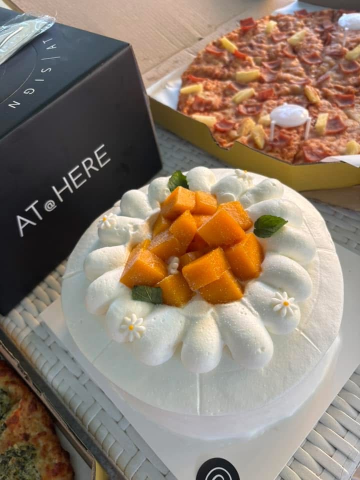 海から帰ってきたら、バースデーケーキとピザが届いていてビックリ😳